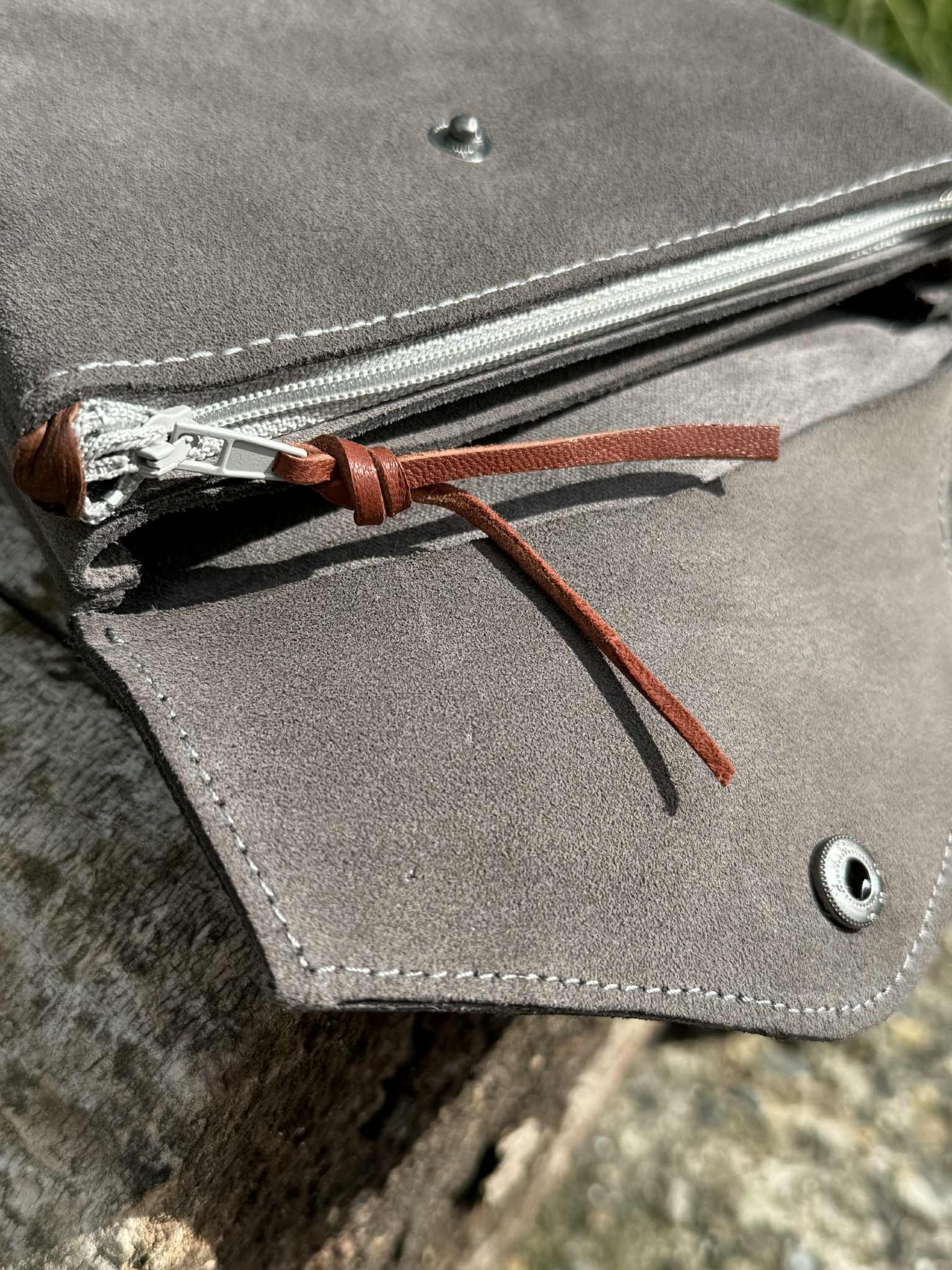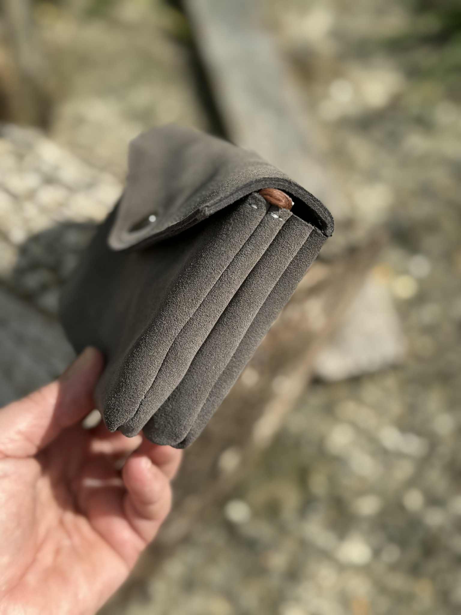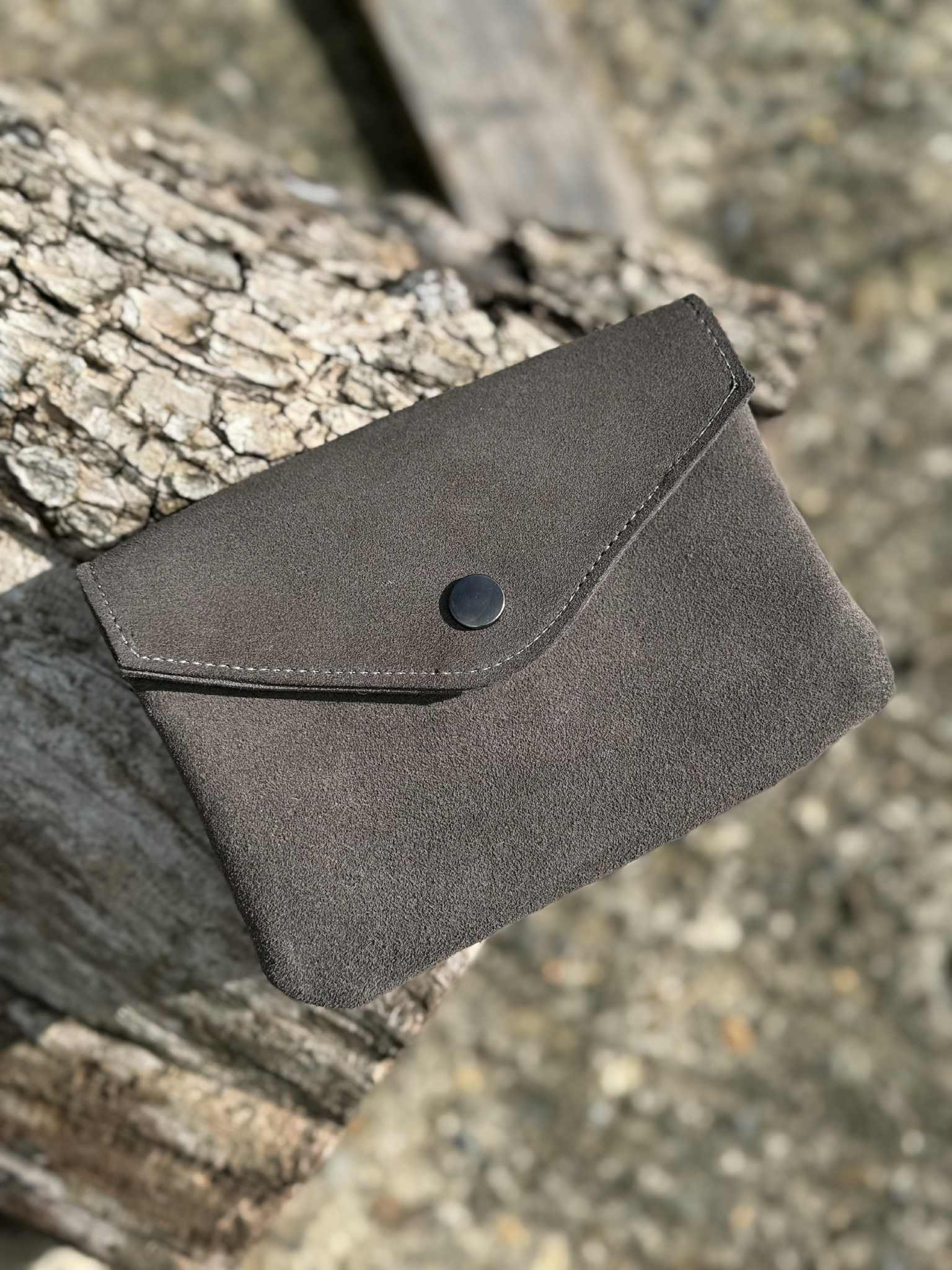 La pochette URIKA, en cuir gris taupe, dispose d’une poche zippée, d’un compartiment pour les cartes et un autre pour les documents comme le passeport. Elle se ferme avec un bouton-pression métallique de couleur black gun. Ses dimensions sont de 11×15 cm, ce qui la rend idéale à glisser dans un sac banane.
